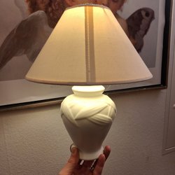 Skal hentes i Malling, Aarhus. Bordlampe med cremehvid lampeskærm og krombelægning.