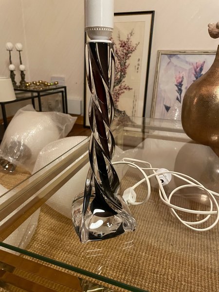 Elegant bordslampa med vriden design i glas.
