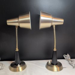 Ett par bordslampor med dekorativ design. Perfekt för att skapa en mysig atmosfär i hemmet.