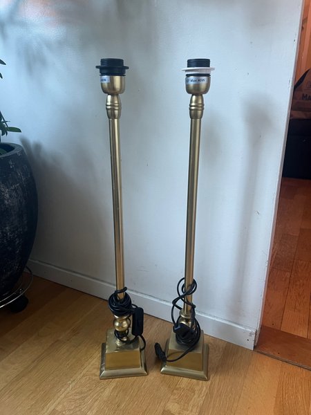 Ett par bordslampor i mässing. Lamporna har E27 sockel och klarar en maximal effekt på 40W. De har en klassisk design och passar bra som sänglampor eller som accentbelysning i ett rum.