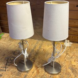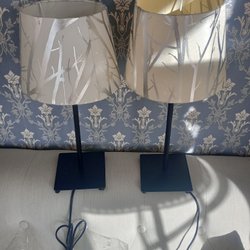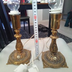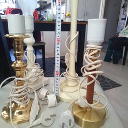 Ej funktionstestade. H:33 cm, Ø:fot:5cm, uppladdningsbara. Sladdar/laddare ingår ej.