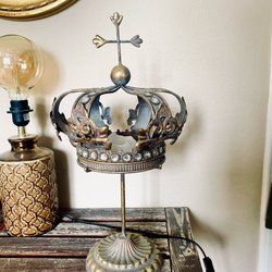 Ett par bordslampor i mässing med en minimalistisk design. Lamporna har en böjd arm som håller ljuskällan. De är lämpliga för att skapa stämningsfull belysning i olika rum. Ca 50 cm höga. Går att byta till runda stora glödlampor om man önskar. Ger ett snyggt ljus och lamporna är trendiga och tidsmässiga.