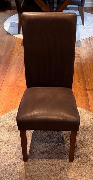 6 st bruna stolar med läderimitation. Perfekt för matsalen eller köket. De är obetydligt använda och riktigt snygga. Dessa har stått i ett matrum som inte användes. Finns inga märken eller några fel. ( Vi är petiga) inköpta på Mio.