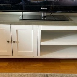 TV-bänk med måtten: Längd 150cm, Bredd/djup 56cm, höjd 35cm. Bärhjälp får tas med.