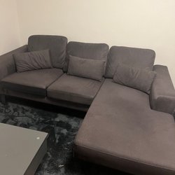 Bekväm grå soffa med plats för flera personer. Perfekt för vardagsrummet eller gästrummet. Soffan har en tidlös design som passar in i de flesta hem.