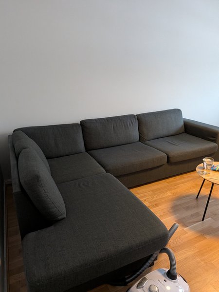 Mörkgrå hörnsoffa