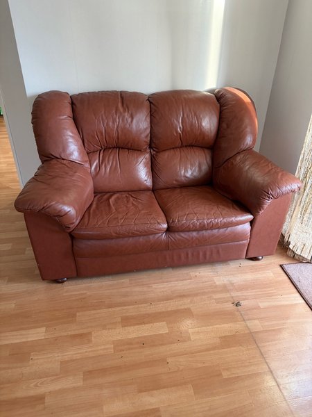 Brun skinnsoffa