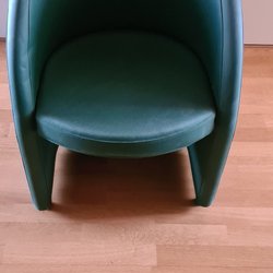 69-talare i läder i sitts, konstläder för övrigt. Snurrfåtölj väl fungerade, skön sittkomfort. Normalt slitage