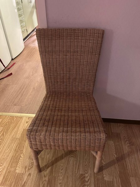 En rottingstol med hög rygg. Passar bra i matsalen eller som en extra stol i vardagsrummet.