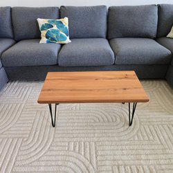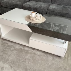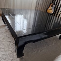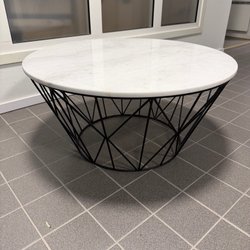 Ett stilrent ovalt soffbord med en mörkgrå bordsskiva och svarta ben. Perfekt för vardagsrummet.
