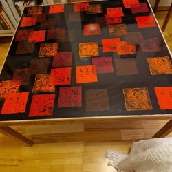 Fint vintage soffbord i tre delar. Köpt i en antikbutik för 1 år sedan. Några smärre skråmor på ben, samt enstaka, ytterst små repor. Dock ingenting som är direkt märkbart. Om bordet får sig en omgång teakolja så mår det ännu bättre. Höjd: ca 48cm