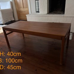 Soffbord i teak med avsmalnande ben. Bordet har en rektangulär form och en klassisk design som passar in i många hem. Teakträet ger en varm och inbjudande känsla. 90x52 höjd 58