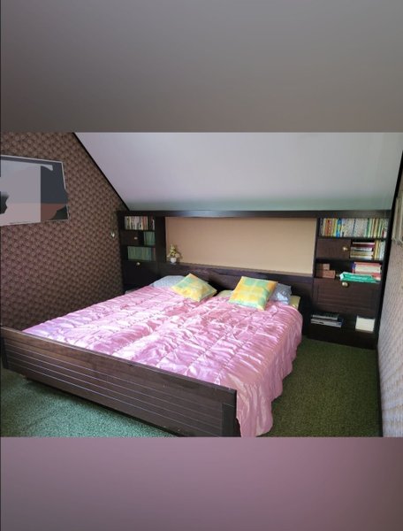 Retro dubbelsäng med gavel som har fasta skåp samt belysning, madrasserna som finns i är två stycken 90 madrasser. Sängen har använts som gästsäng så den är sparsamt använd. Nedmonteras av köparen vid hämtning strax utanför Märsta.