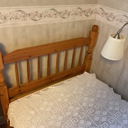 Våningssäng i trä. Sängen har en stege för att komma åt den övre bädden. Madrasser, sängkläder och gosedjur ingår ej.