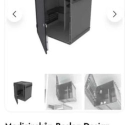 Ett praktiskt medicinskåp för förvaring av mediciner och andra småsaker. Skåpet har dörrar och hyllor för organiserad förvaring. Lås med nyckel.