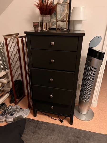 En jättefin och stilren byrå. I en fantastisk grå färg som passar otroligt många olika stilar. Höjden på skåpet är 106cm