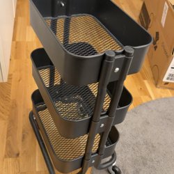 Praktisk förvaringslösning med trådbackar och ett stabilt stativ. Perfekt för att organisera kläder, leksaker eller andra föremål i hemmet. Backarna är lätta att dra ut och ger god överblick över innehållet.