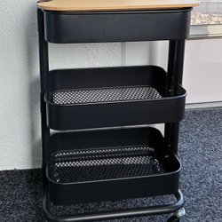 En elegant rullvagn som passar perfekt för servering eller som en stilfull inredningsdetalj. Den har två hyllor och hjul för enkel förflyttning. Lite rostig men det går att åtgärda.