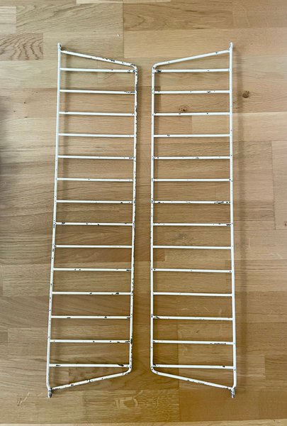 Ett par original-gavlar till Stringhylla, fint skick men en del färgskav. Mått ca 77x18 cm.