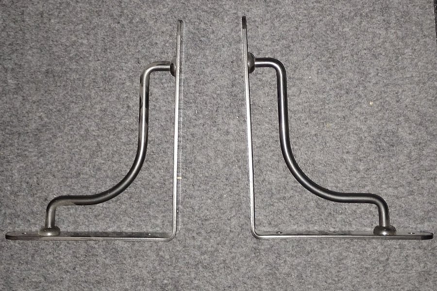 Dessa hyllkonsoler i metall är designade för att ge stöd och stabilitet till hyllor. De har en robust konstruktion och en stilren design som passar in i de flesta inredningar. Konsolerna är enkla att montera och kan användas för att skapa praktiska förvaringslösningar i hemmet.