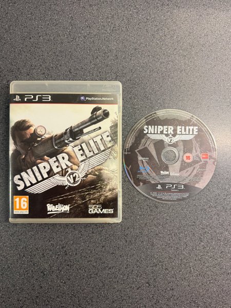 Spel till PlayStation 3. Titel: Sniper Elite V2. Utvecklat av Rebellion och utgivet av 505 Games. PEGI-åldersgräns: 16. BBFC-åldersgräns: 15. Tillverkad i Österrike.