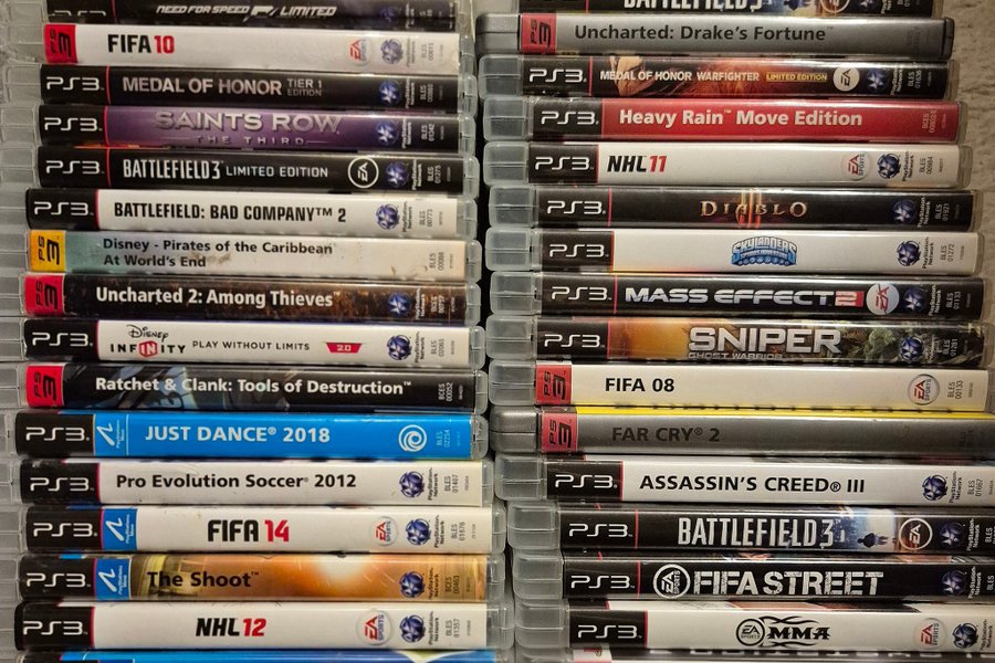 Ett paket med 32 st PlayStation 3 spel. Innehåller titlar som Need for Speed, FIFA 10, Medal of Honor, Saints Row The Third, Battlefield 3 Limited Edition, Battlefield Bad Company 2, Disney Pirates of the Caribbean At World's End, Uncharted 2 Among Thieves, Disney Infinity Play Without Limits, Ratchet & Clank Tools of Destruction, Just Dance 2018, Pro Evolution Soccer 2012, FIFA 14, The Shoot, NHL 12, Starter Disc, Uncharted Drake's Fortune, Medal of Honor Warfighter Limited Edition, Heavy Rain Move Edition, NHL 11, Diablo, Skylanders Spyro's Adventure, Mass Effect 2, Sniper Ghost Warrior, FIFA 08, Far Cry 2, Assassin's Creed III, FIFA Street, EA MMA och NHL 10.