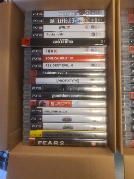 Stor samling av PS3-spel. Inkluderar titlar som Battlefield 4, Battlefield 3, NHL 12, Rocksmith, Tomb Raider Underworld, FIFA 10, Soulcalibur IV, Resident Evil 6, Resident Evil 5, Prototype, Skyrim, Grand Theft Auto V, Mirror's Edge, Final Fantasy XIII, Skylanders Giants, Skylanders, Uncharted 2: Among Thieves och FEAR 2: Project Origin.