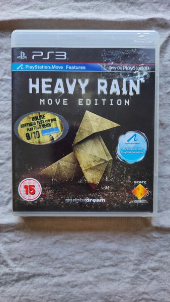 Heavy Rain Move Edition till PlayStation 3. Spelet är fullt spelbart med PlayStation Move men kan även spelas utan. Skiva i mycket gott skick men förpackning och manual har tydliga märken efter klisterlappar.