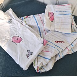 Jag säljer ett bäddset med påslakan och örngott för spjälsäng från Finlayson.