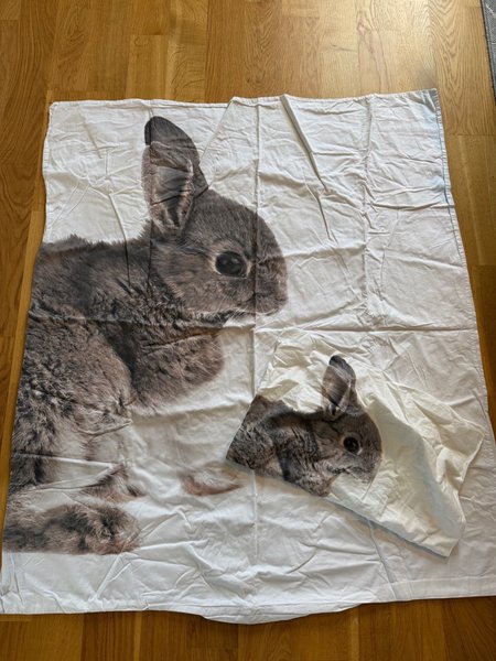Ett fint påslakan med ett tryckt kaninmotiv. Perfekt för barnrummet eller för den som älskar djur.