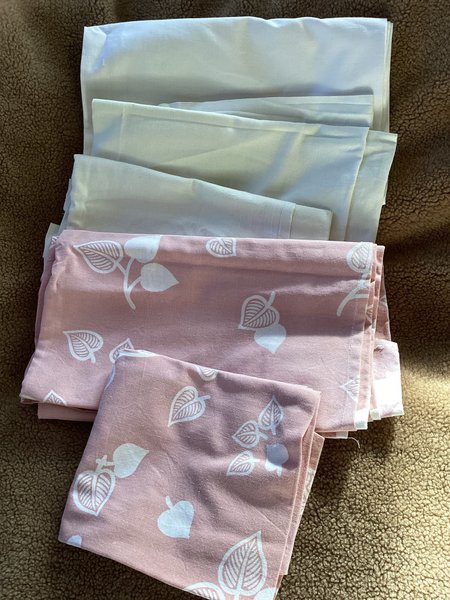 1 rosa lakan med vita blad 85 x 115 cm ca + ett likadant örngott 35x 45 cm ca