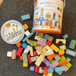 Ett set med träklossar i olika former och storlekar. Perfekt för lek och kreativitet.