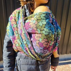 Bärsele drån märket Lenny Lamb i starkt vävt-tyg. Unikt, underbart färgglatt mönster. Selen har justerbara remmar och spännen för bästa passform. Mjuk och följsam sele med flertal justerbara funktioner. Funkar att bära barnet på magen eller ryggen och utrustad med en huva för extra skydd till barnet.