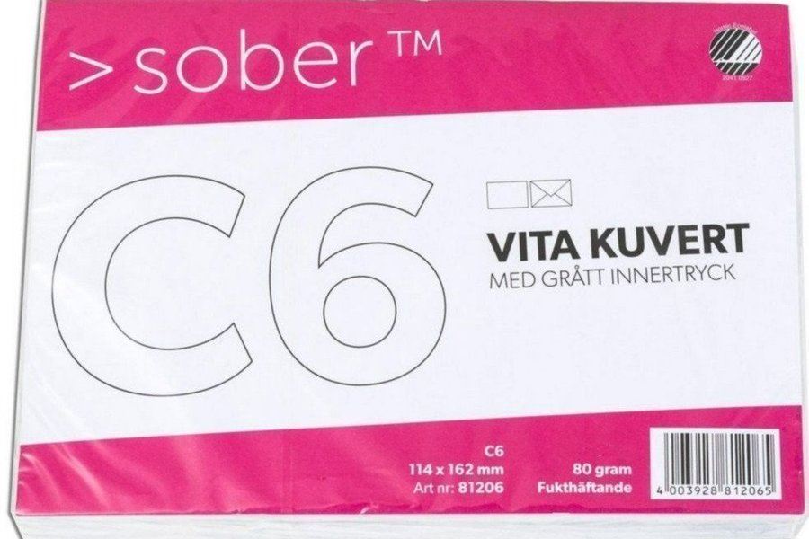 Kuvert C6 12st , Sober