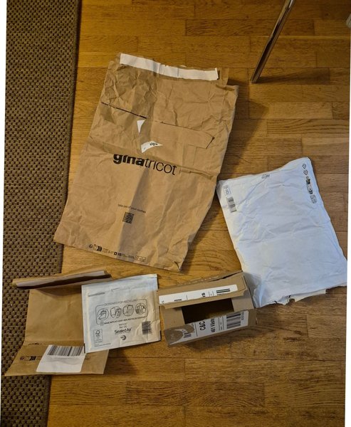Ett gäng använda förpackningar i olika storlekar och material. Innehåller både bruna papperspåsar, och kartongbitar. Perfekt för dig som behöver emballage till frakt eller förvaring.