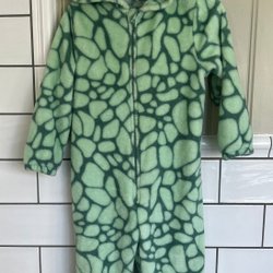 Söt dräkt föreställande en hjort. Den har en huva med ett hjortansikte och små horn. Framsidan har en dragkedja och en liten ficka. Baksidan har en liten vit svans.