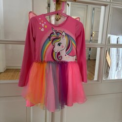 Röd dräkt med tryck som liknar en rustning. Långärmad och hellång.