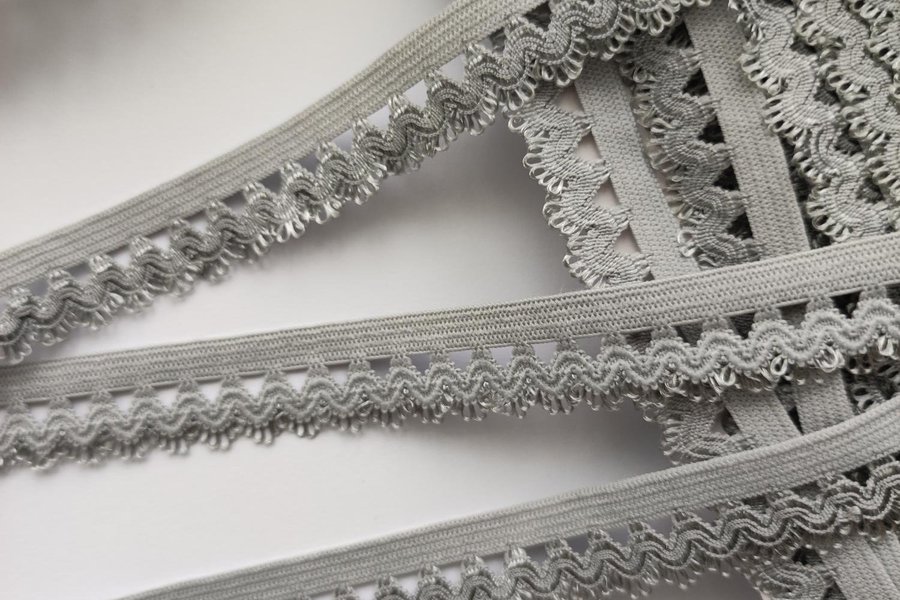 Spetsresår, grå, 1,5 cm bred.