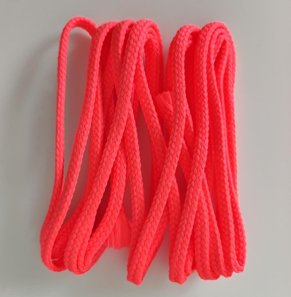 Snodd, 4 mm tjock. Orangeröd neon. 100% polyester. Förp. med 290 cm.