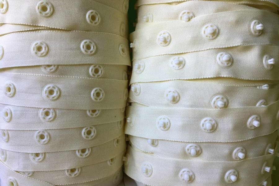 Tryckknappsband, ljusbeige, 1 meter