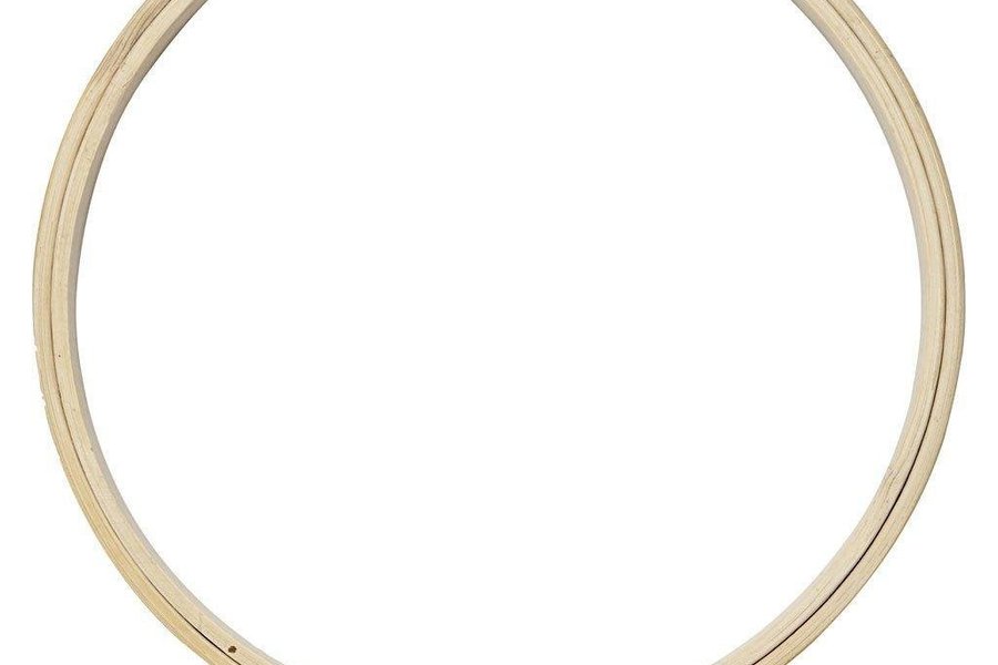 Rund syram av trä med spännen i metall. Fungerar både som verktyg till att spänna och sätta fast tyg som ska broderas eller målas. Kan även användas som ram runt det färdiga resultatet