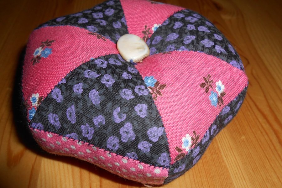 Handsydd nåldyna i bomullstyg.
