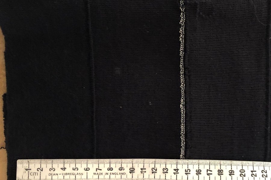 Mörkt marin muddtyg med vikrand B. 145 total läng 30 cm i två rader. så mudden är ca 7 cm dubbel.