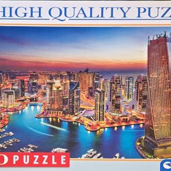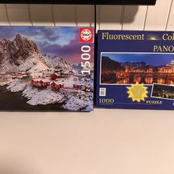 1000-bitars pussel, lagt en gång, men tyvärr fattades det en bit redan som nytt och oöppnat, se bild.