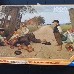 Men tejpskadad pussellåda därav priset 25 kr.