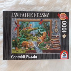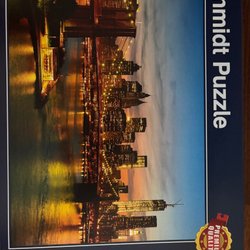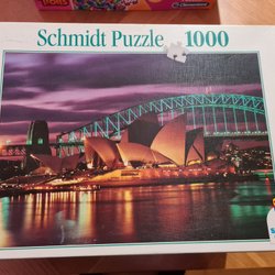 Ett pussel från Schmidt. Mått: 655 x 478 mm. Bild på Sveriges kungafamilj. 1000 bitar komplett. Pussellåda skadad därav priset.