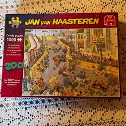 Pussel av Jan Van Haasteren. Motivet är The Soapbox Race. 1000 bitar.Själv lagt pusslet och garanterar att det är komplett och i gott skick! Alltid lika roligt att lägga hans pussel!