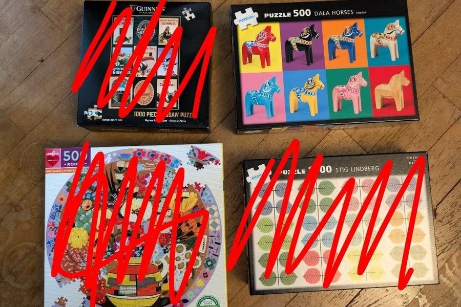 Pussel med motiv av Dalahästar, 500 bitar.