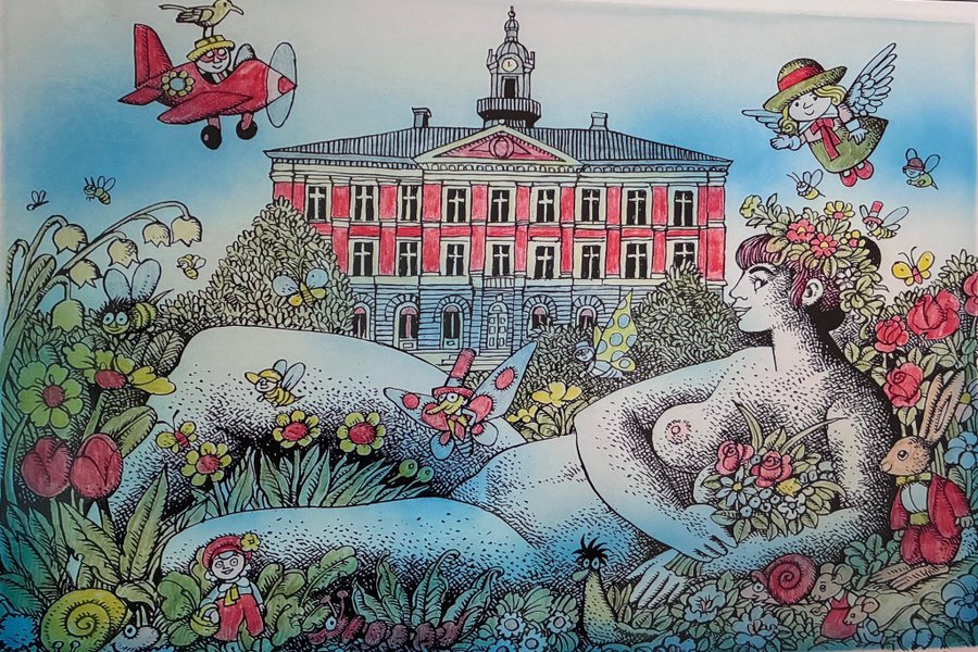 Pussel med motiv Gudinna Vid Hyperboreiskt Hav av Hans Arnold. Handkolorerad litografi 40/100. Gävle 550 år.