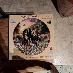 Ett pussel av märket Gibsons. Motivet är "A Year In The Garden". 500 bitar. Komplett lagt en gång. Hund finns I hemmet